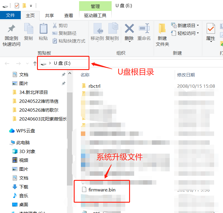 2.2.1 在U盤根目錄新建一個名為“rbctrl”的文件夾,將固件升級文件復制進去。