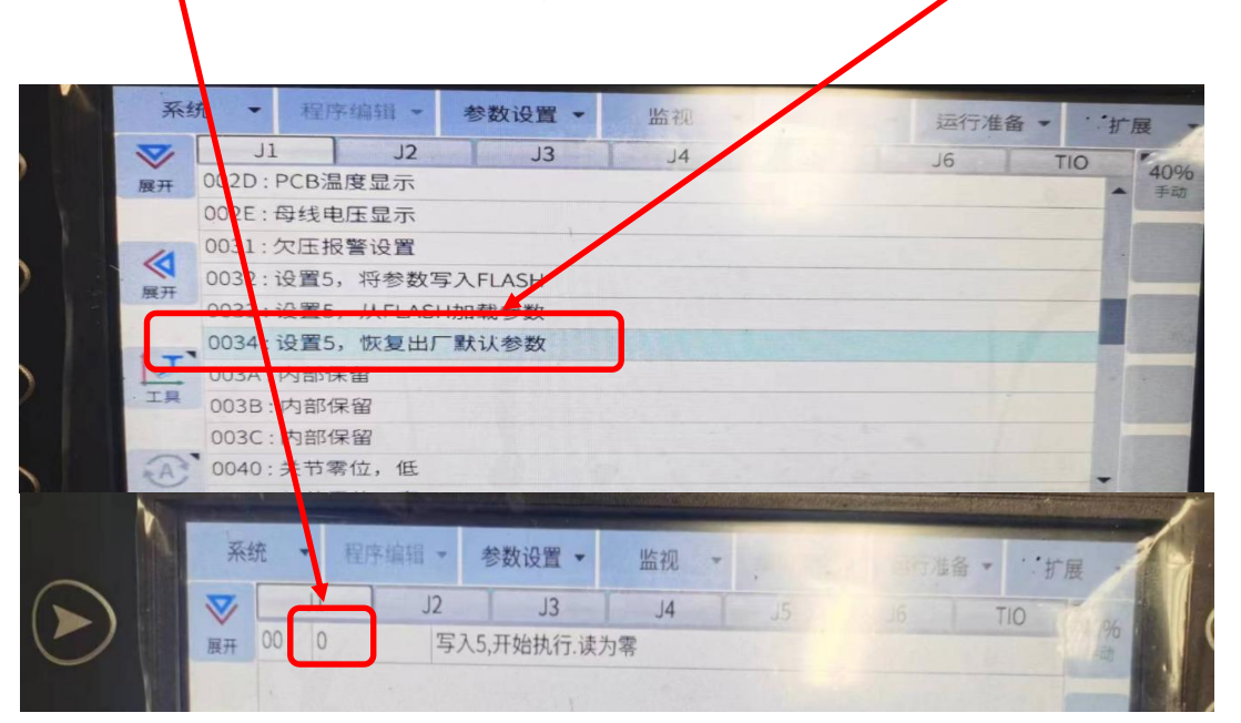2.軟件版本V3.0以上版本操作方法:點擊參數設置----伺服參數-----0034恢復出廠設置如圖