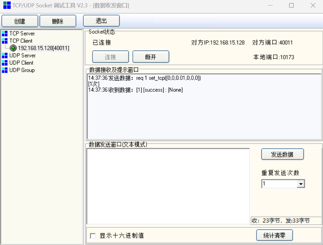 使用通訊助手創建客戶端,連接機器人40011端口,設置TCP參數