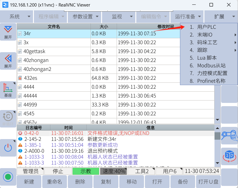 1. 用戶PLC的編寫只能在示教器上,在擴展-用戶PLC中。
