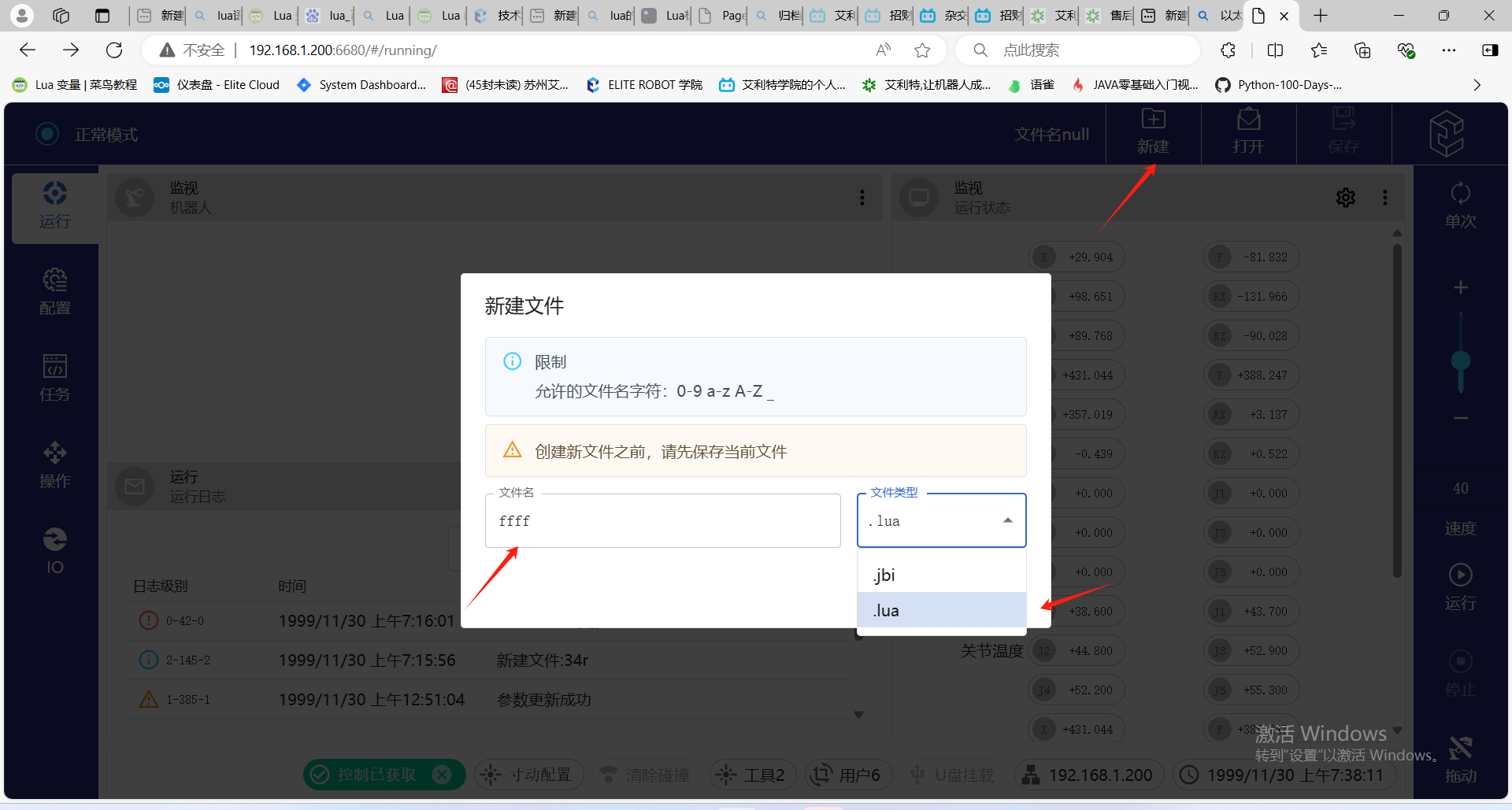 1. 推薦使用Web示教器進行LUA編程,詳細使用Web示教器可以咨詢官方技術文檔。