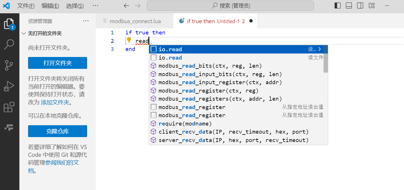 當擴展插件安裝成功時,使用該腳本語言寫程序時會有自動補全和代碼提示功能。