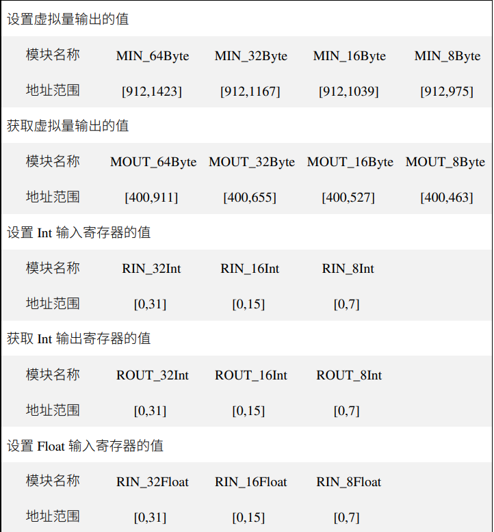 模塊功能及對應的控制器的 M 變量或 profinet 寄存器的地址范圍具體如下:
