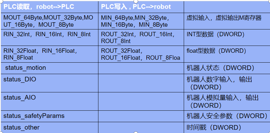 以上是機器人profinet通訊寄存器的地址以及可以讀取寫入的數據類型。