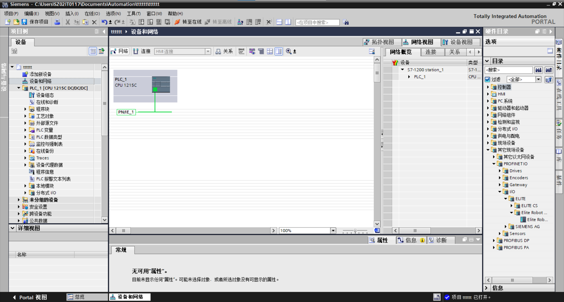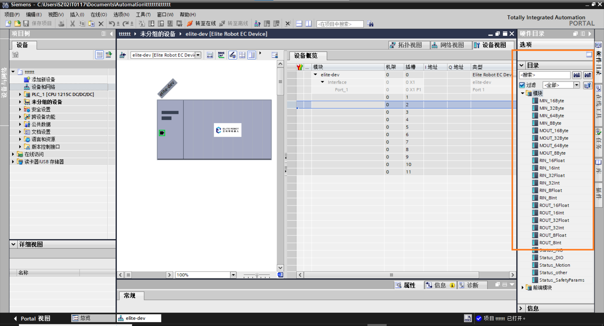 2. 添加 Elite Robot EC Device 到設備和網絡,點擊左側設備和網絡,進入頁面,在右側目錄欄找到其他現場設備-profinetI/O-IO-elite,找到elite robot EC Device如圖 3-3 所示。