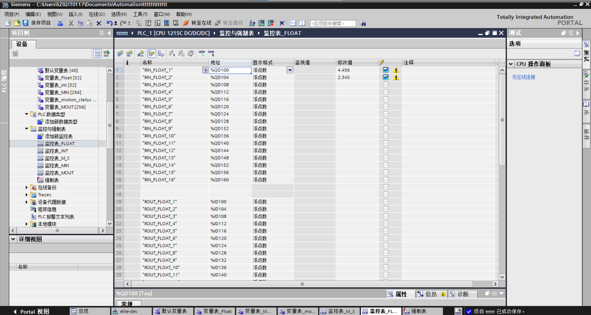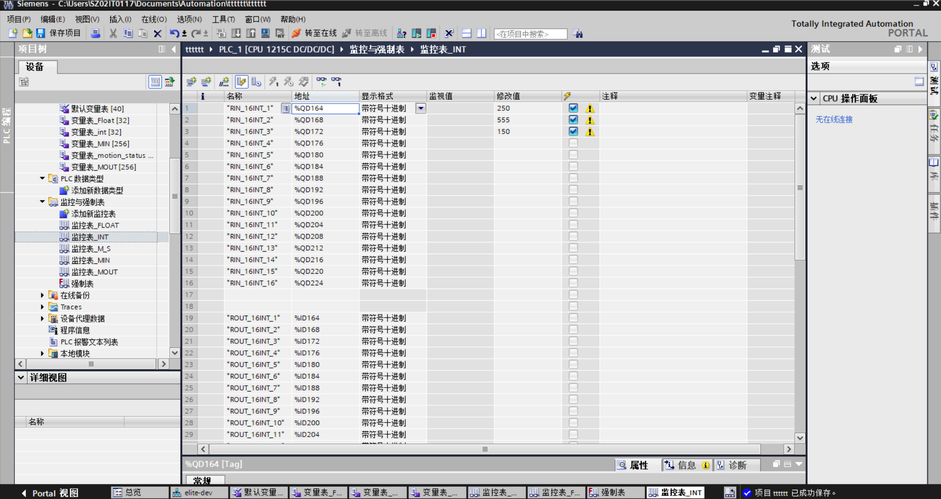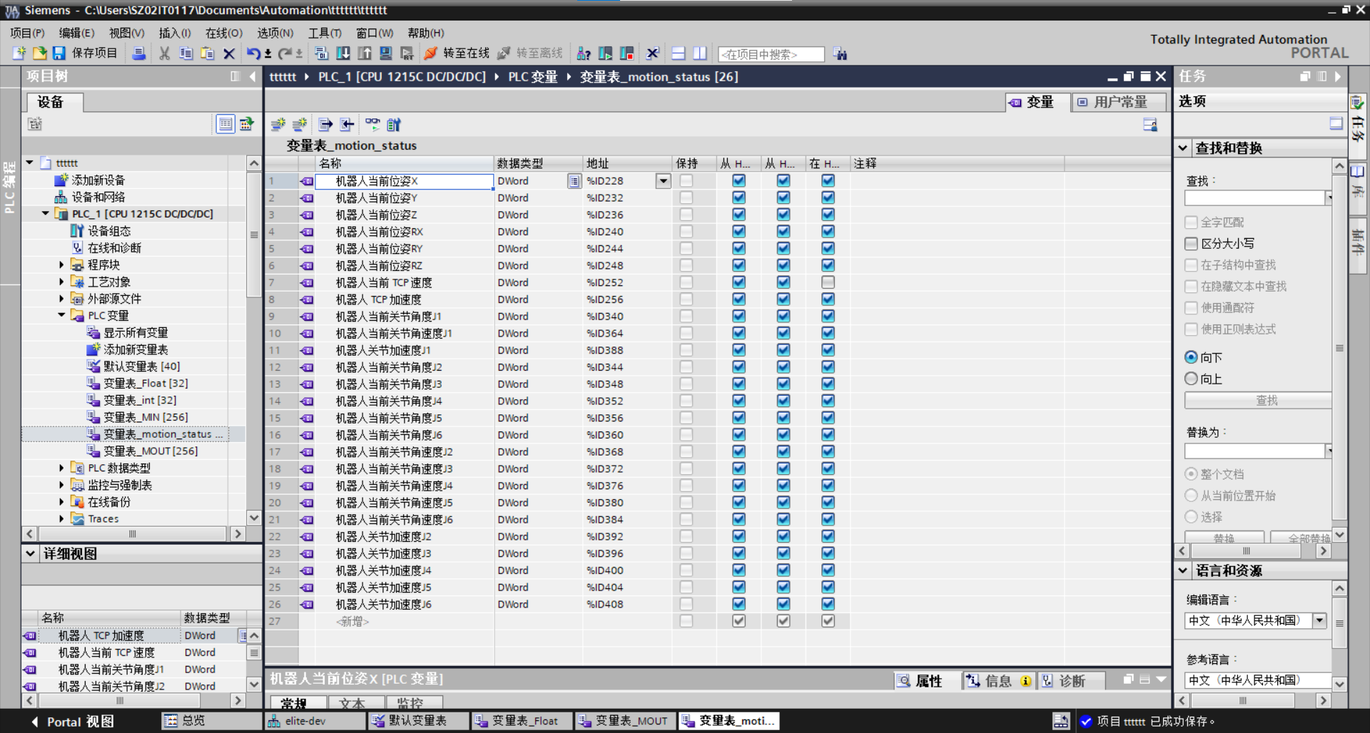 機器人端啟動腳本,plc開啟監視即可看到輸入輸出值的變化。