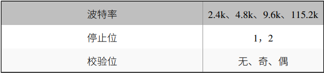 下表為RS485 接口的可用設置