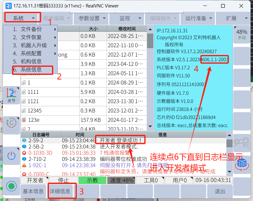 先用手機對零點界面拍照,把六個關節的零點脈沖都拍照記錄下來。然后在示教器上對套圈超限關節點擊:記錄。這時該關節角度會變成零點位置的角度,且該關節的零點脈沖值會改變,機器人可以手動運行。