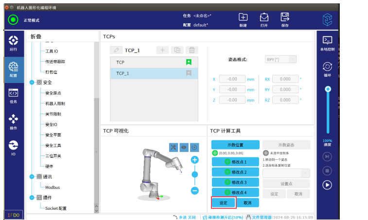 第三步:4個點設置好后,如圖-6所示,點擊設定,新建的TCP就設置好了。如圖-7兩個紅框標記所示,新建的TCP_1與基座標系方向不同。