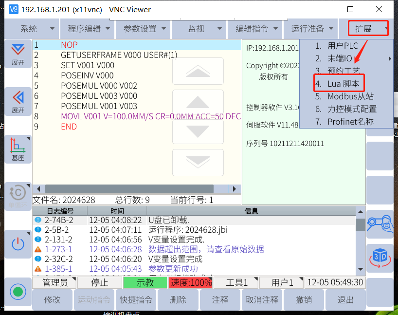 3、 機(jī)器人運(yùn)行加載Socket通訊lua腳本