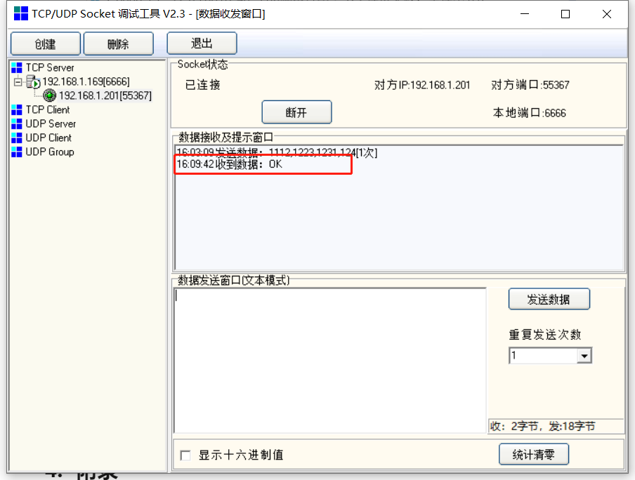 ret = client_send_data(ip,"OK",0,port) --發(fā)送數(shù)據(jù)給服務(wù)器