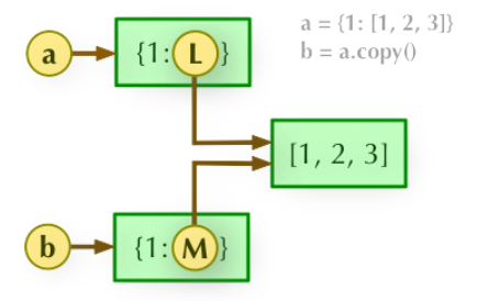# 淺拷貝, a 和 b 是一個獨立的對象,但他們的子對象還是指向統一對象(是引用)。