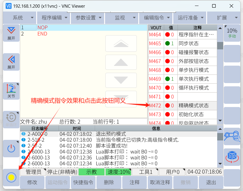 獲取機器人是否處于精確模式并執行精確模式指令示例():