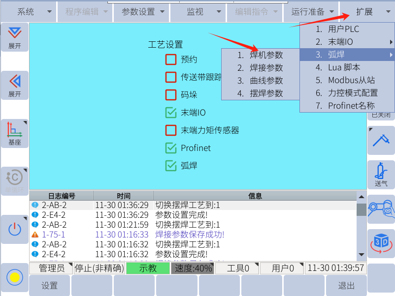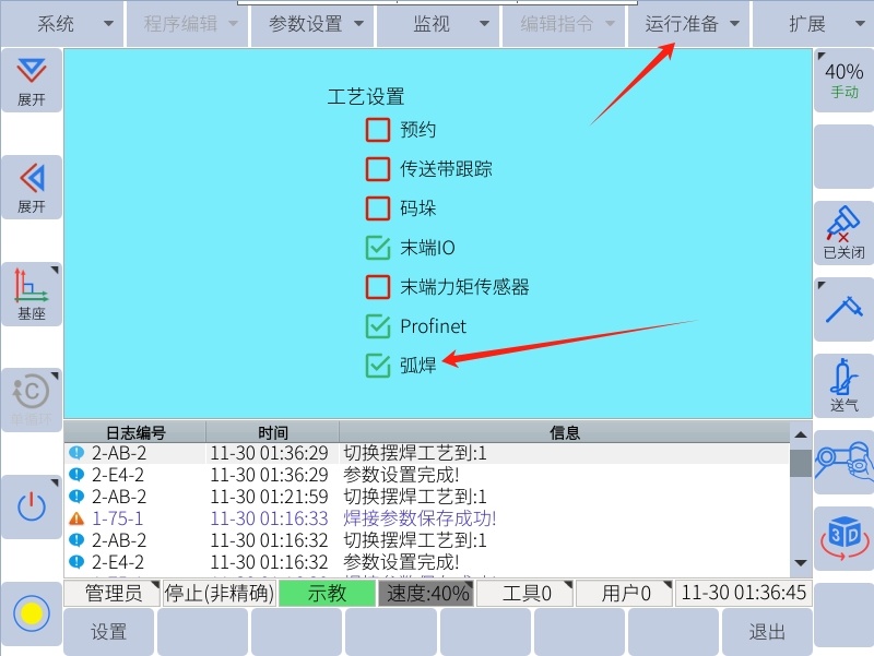 在運行準備里面勾選弧焊,然后重啟機器人即可