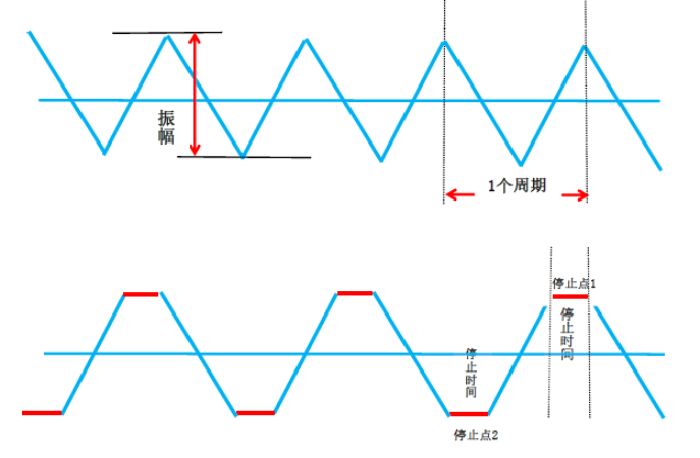 停止時間:停止點1表示Sin擺焊接的最高點,停止點2表示Sin擺焊接的最低點