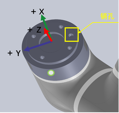 對(duì)于重心設(shè)置默認(rèn)在法蘭盤中心位置,可查看銷孔位置以辨別出末端工裝的重心是朝向那個(gè)方向,從而設(shè)置對(duì)應(yīng)的參數(shù)。