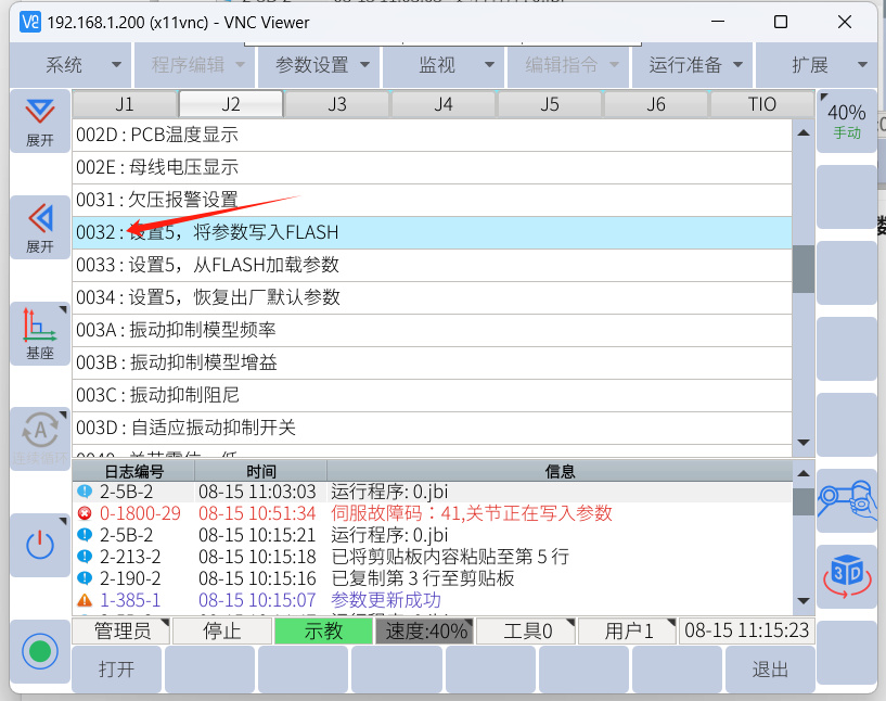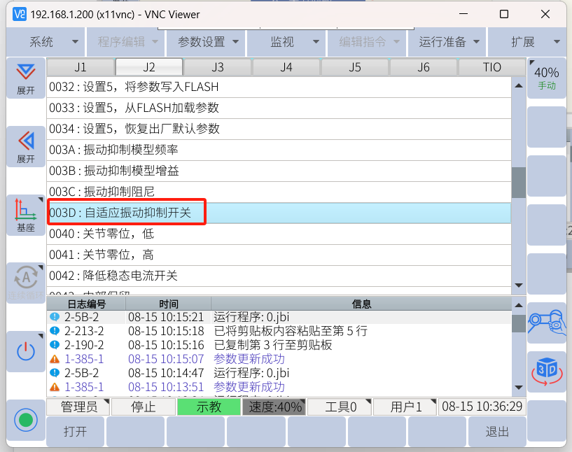 2. 找到003D,一般抖動(dòng)牽連的關(guān)節(jié)是J2和J3較多,可僅打開這兩個(gè)關(guān)節(jié)的震動(dòng)抑制功能。
