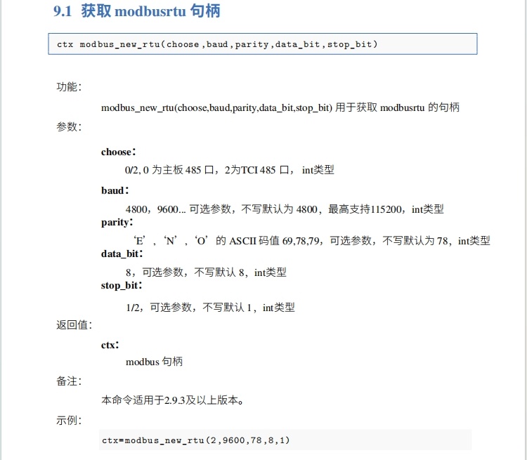 ModBus Master接口常用獲取modbus、連接modbus、關閉modbus、設置slave、讀取單個線圈、寫入單個/多個線圈、讀取單個寄存器、寫入單個寄存器等指令,本文主要講解以上指令,具體指令詳解如下圖所示,其他指令也可參考EC-lua手冊ModBus Master章節