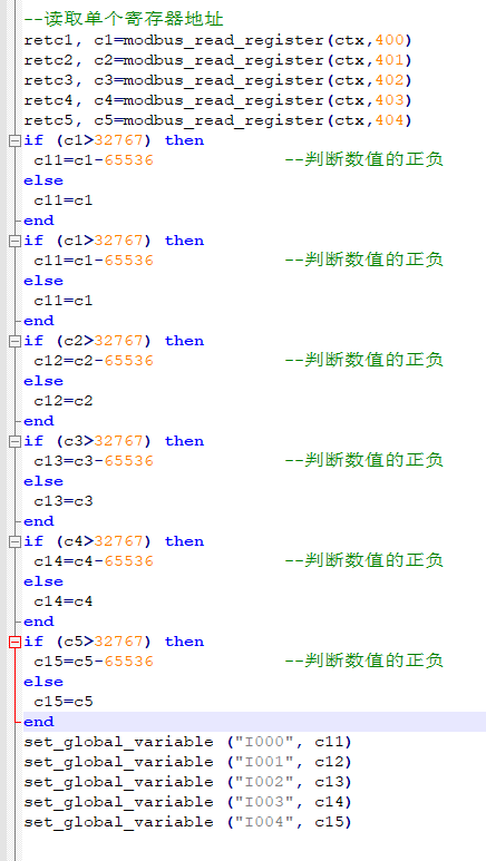 讀取400開始的5個寄存器,分別將寄存器數值存入全局變量I000-I004中