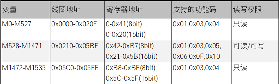 4. ModBus 協議中一個寄存器為 16 位變量,因此對 M 變量的一個寄存