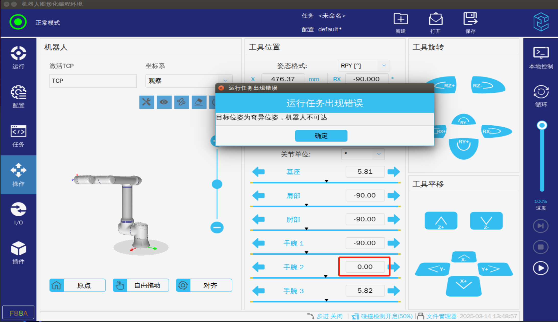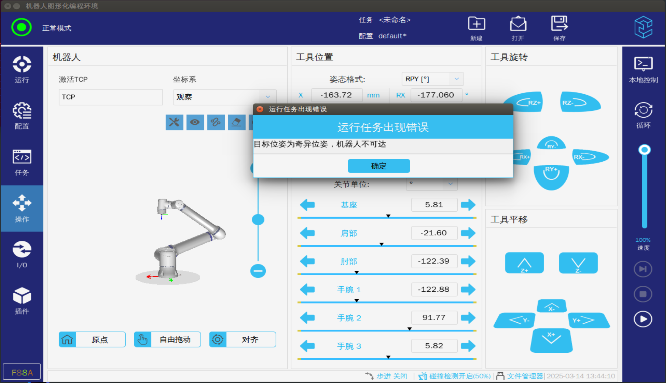 ? 機器人進入奇異點時需要使用關節坐標將機器人移出奇異點