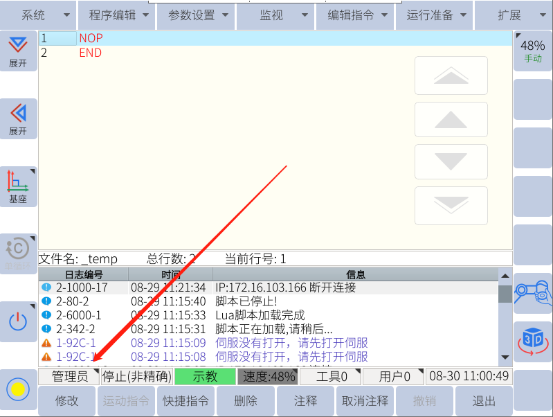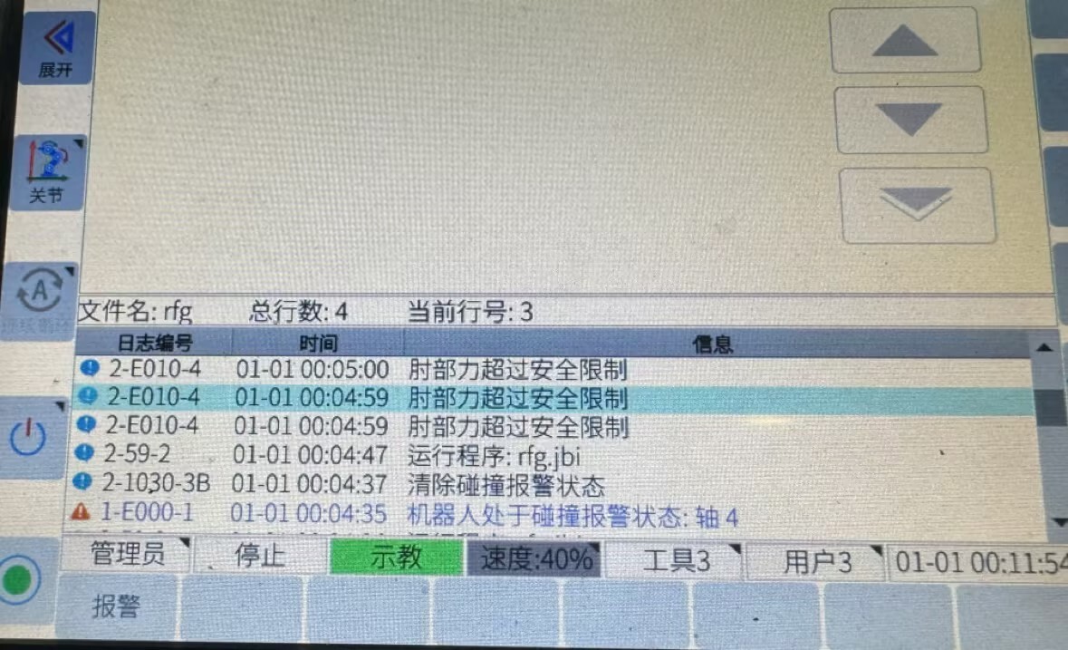 在某些情況下會出現“肘部力或者工具超過安全限制”的提示,會暫停運行的程序。