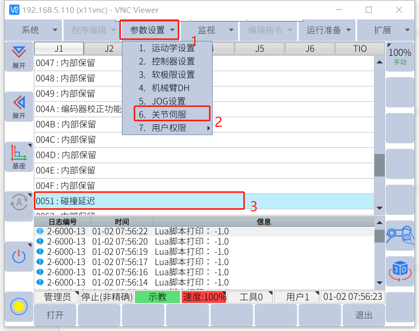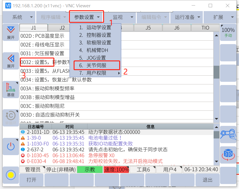 參數設置-關節伺服-打開0032參數寫入5進入保存.