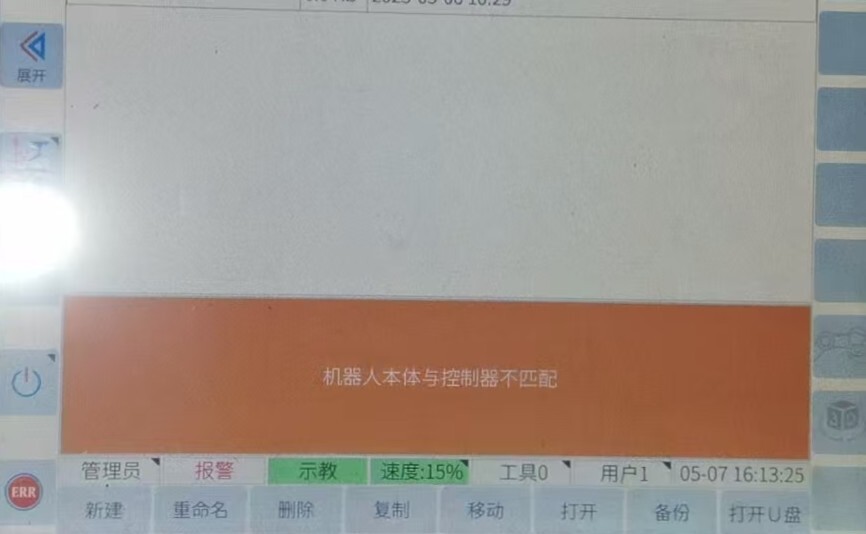 原因2:更換完關節后,會報警控制柜與機械臂不匹配。