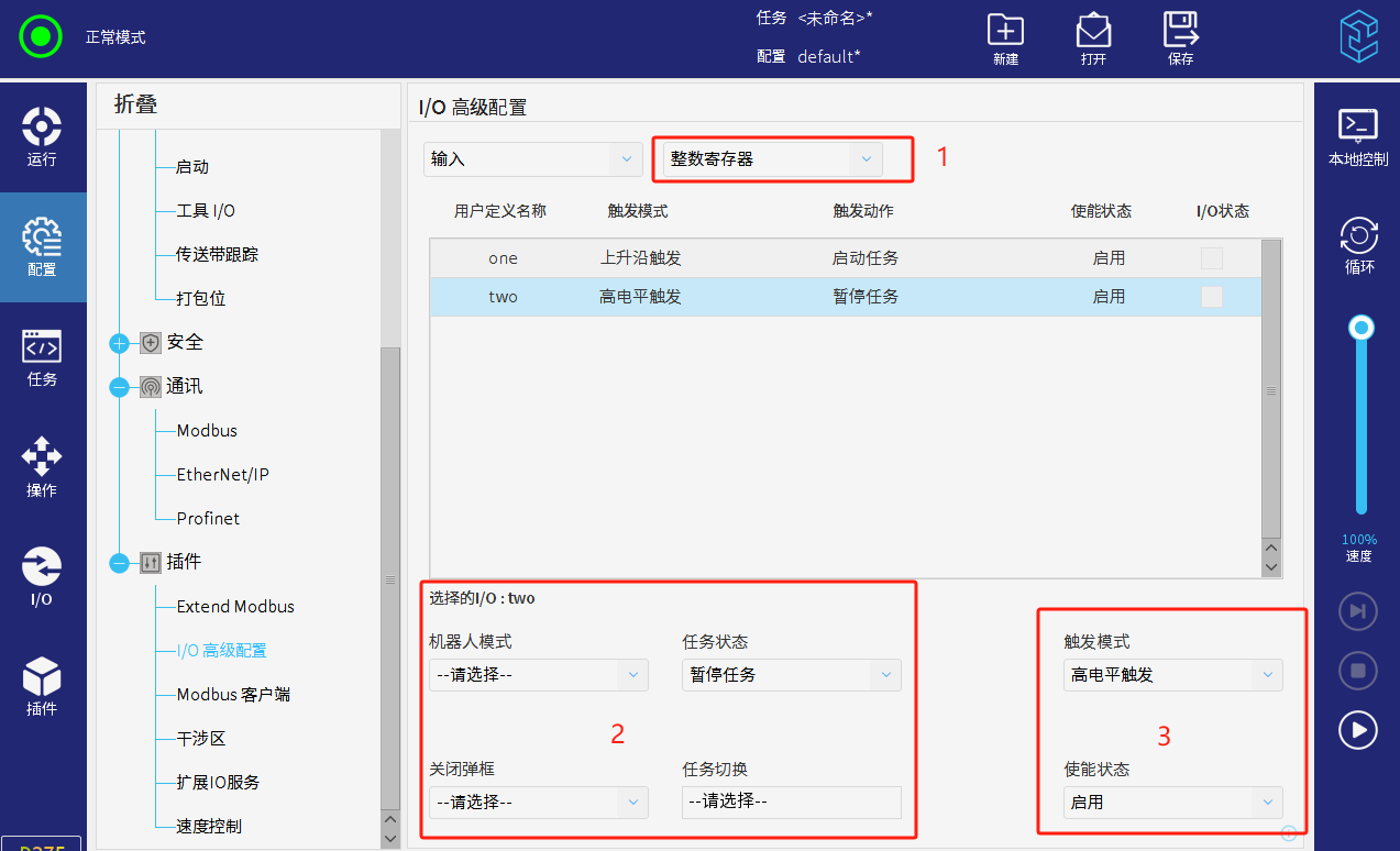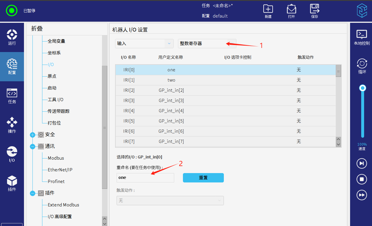 項目通常會需要通過modbus通訊來讓PLC控制機器人的啟動和暫停,還有反饋 機器人的運行,暫停狀態等。但是目前通過modbus來實現必須犧牲一個IO,MODBUS擴展插件可規避占用物理IO。