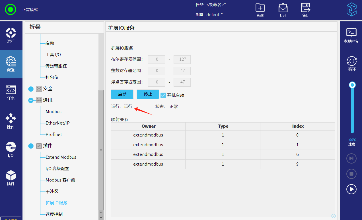 配置 > 插件 > 擴展IO服務。檢查是否啟用并運行正常,建議勾選開 機自啟動。