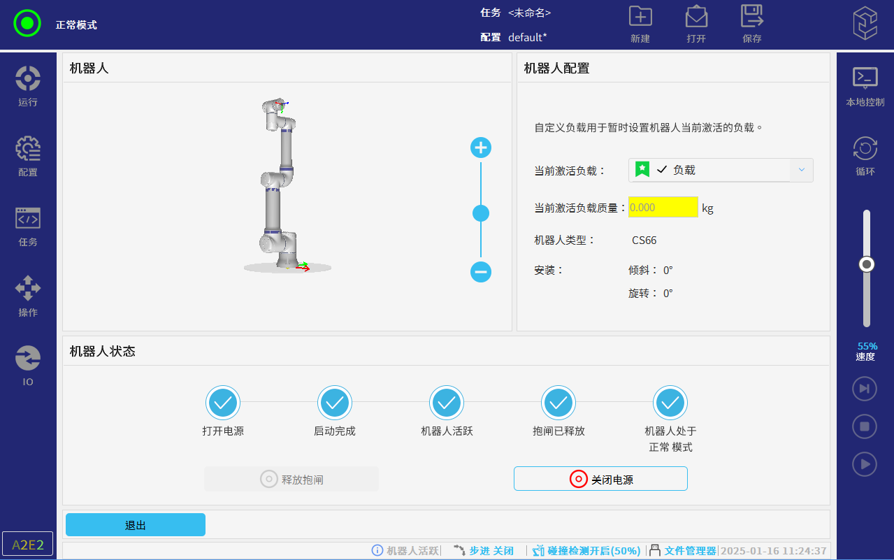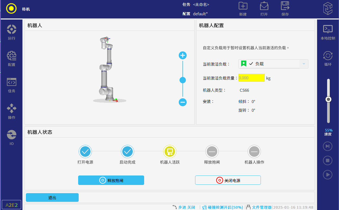客戶應用場景中可能會要求使用 SDK 來開發,下面介紹 SDK 啟動機器人方法,過程中請保持機器人為遠程模式,與示教器操作大體一致只是以代碼的形式分步執行,打開電源,釋放抱閘等功能,至機器人處于正常模式后運行。