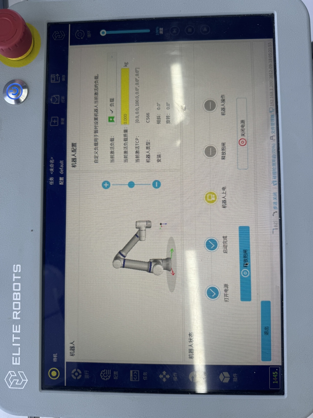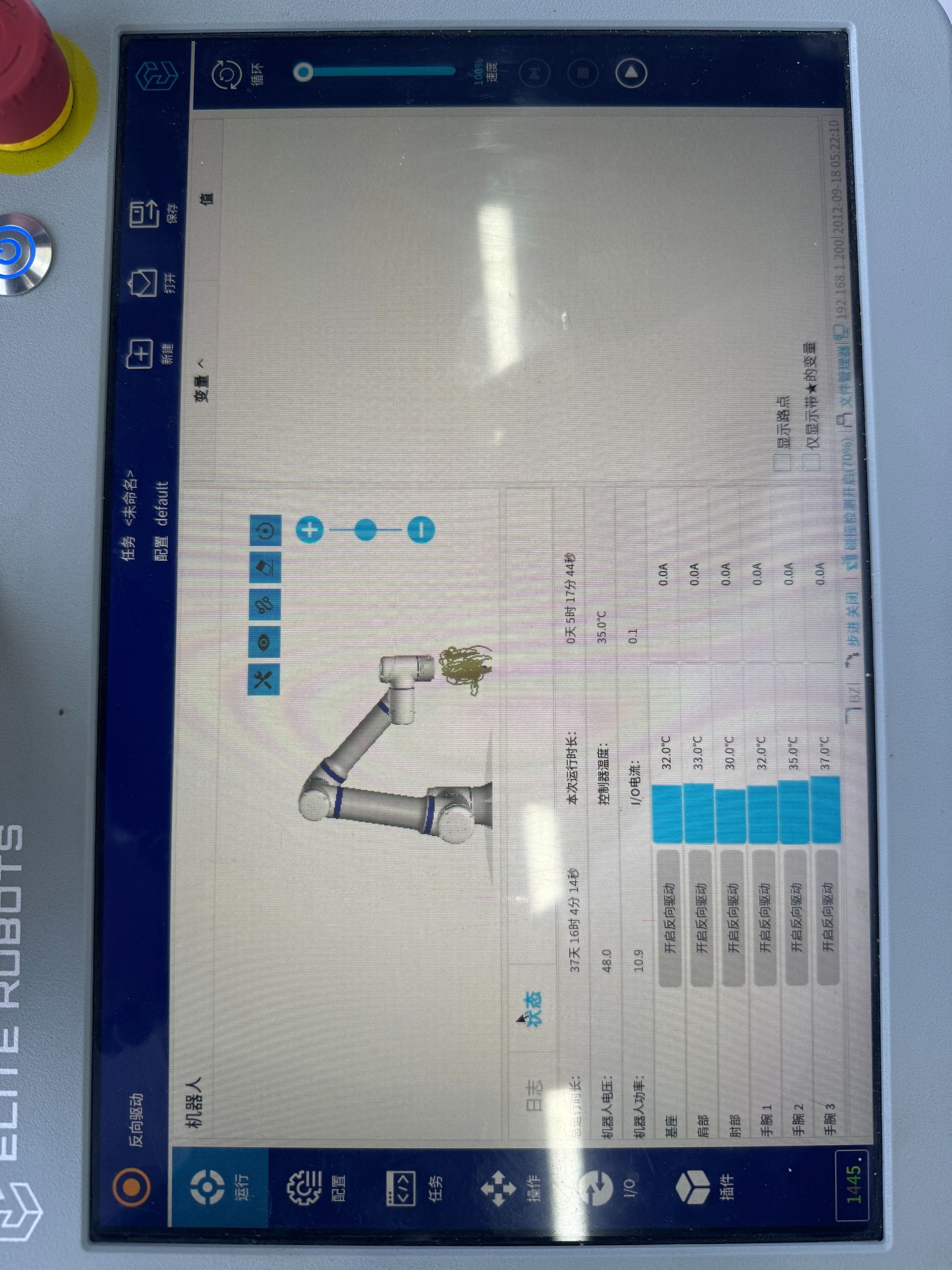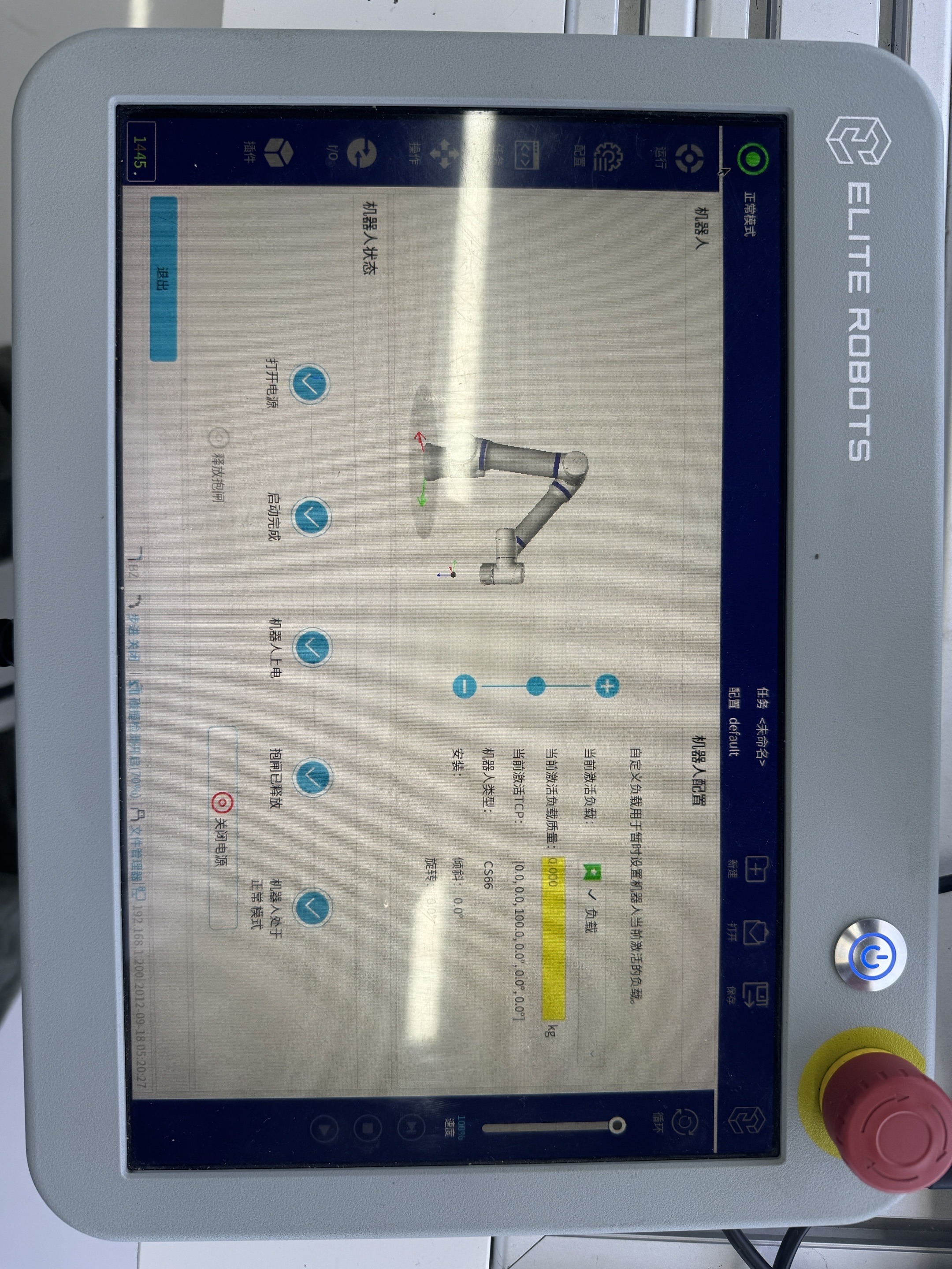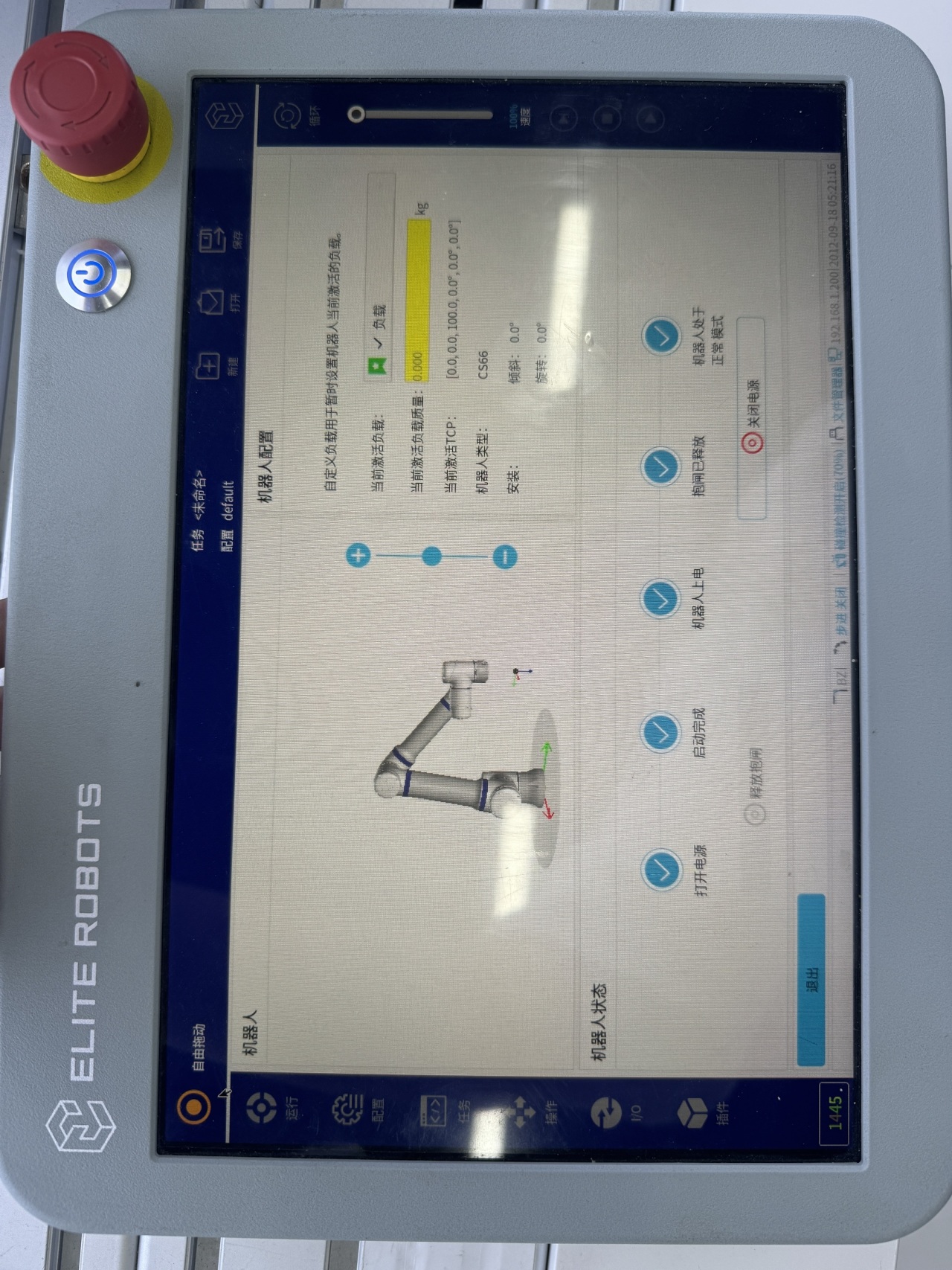 ● 按住示教器背面的黑色Freedrive(自由驅動)按鈕,將機器人設置為自由驅動模式;