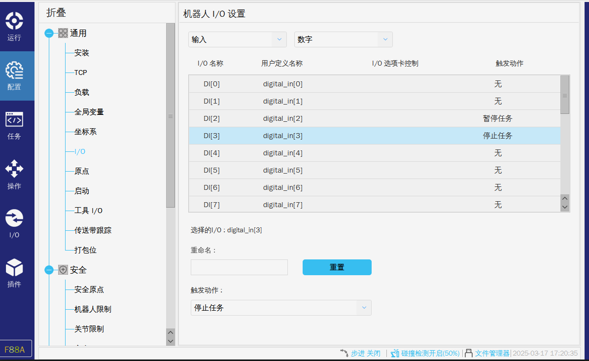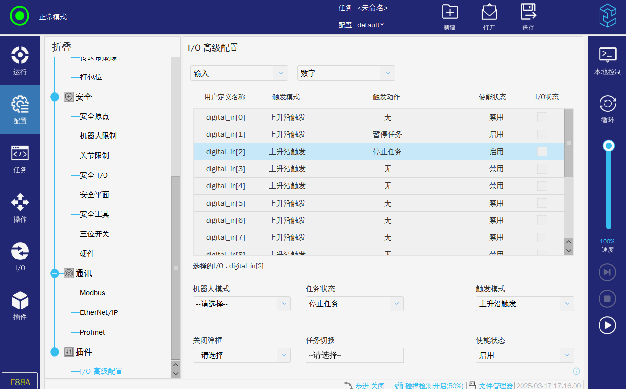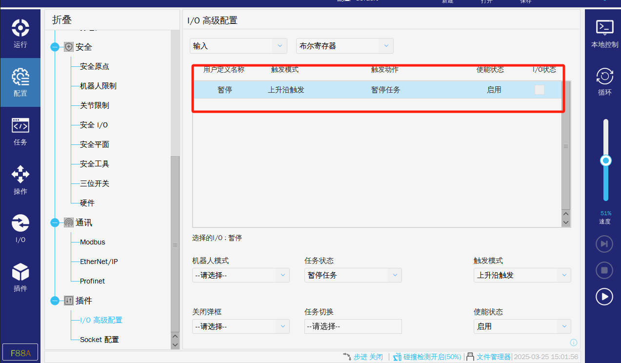 在使用硬接線的交互方式時(shí),運(yùn)行過(guò)程中如果無(wú)故暫停或者停止,可以查看以上兩張圖片是否有配置導(dǎo)致任務(wù)停止或者暫停。