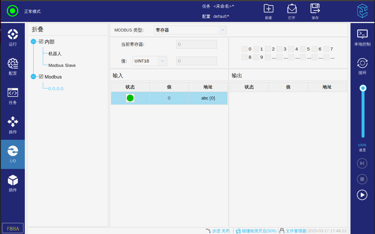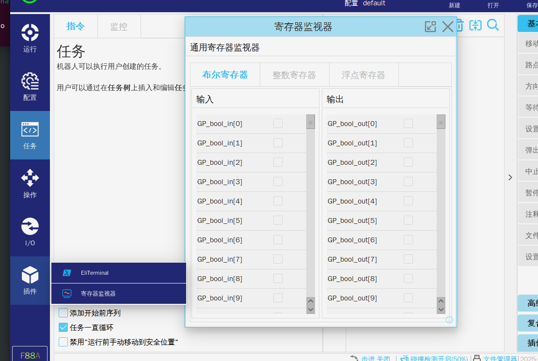 5. 查看IO信號(hào),modbus,通用寄存器信號(hào)。