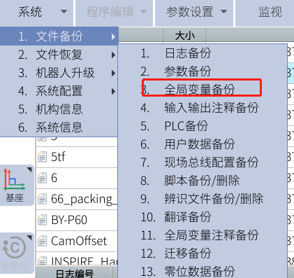 點擊:系統--文件備份,列表中1-13可以按需求備份