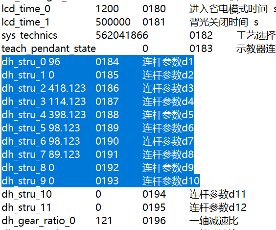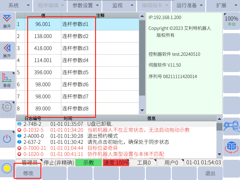 ②手動查看原機器人dh記錄恢復后更改:參數設置--機械臂DH,點擊左下角可修改,斷電重啟保存