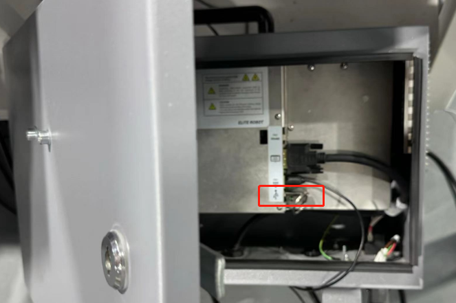 一般使用u盤進行日志備份,建議將一個空U盤插入到機器人的usb接口上如圖:(需要打開控制柜)