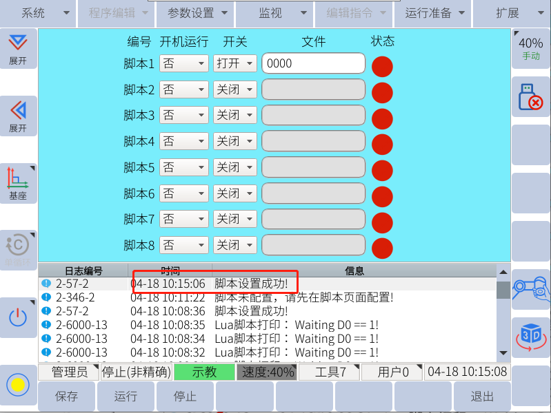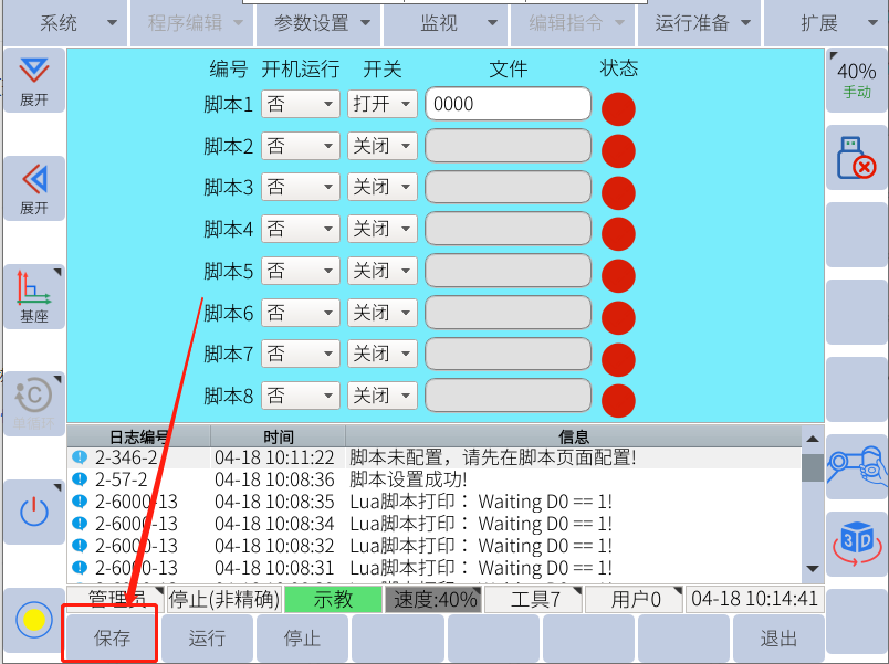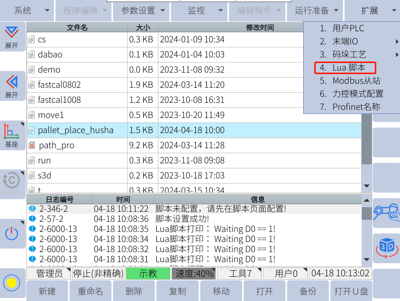 一般使用u盤進行單個lua文件的恢復(導入),先確認u盤中有rbctrl 文件夾且rbctrl文件夾里有luadir這個文件夾且該文件夾下面有lua文件
