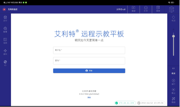 (4)進(jìn)入網(wǎng)頁(yè)版示教器登錄界面后,輸入用戶(hù)名和密碼,點(diǎn)擊登錄即可進(jìn)入網(wǎng)頁(yè)版示教器的操作界面。