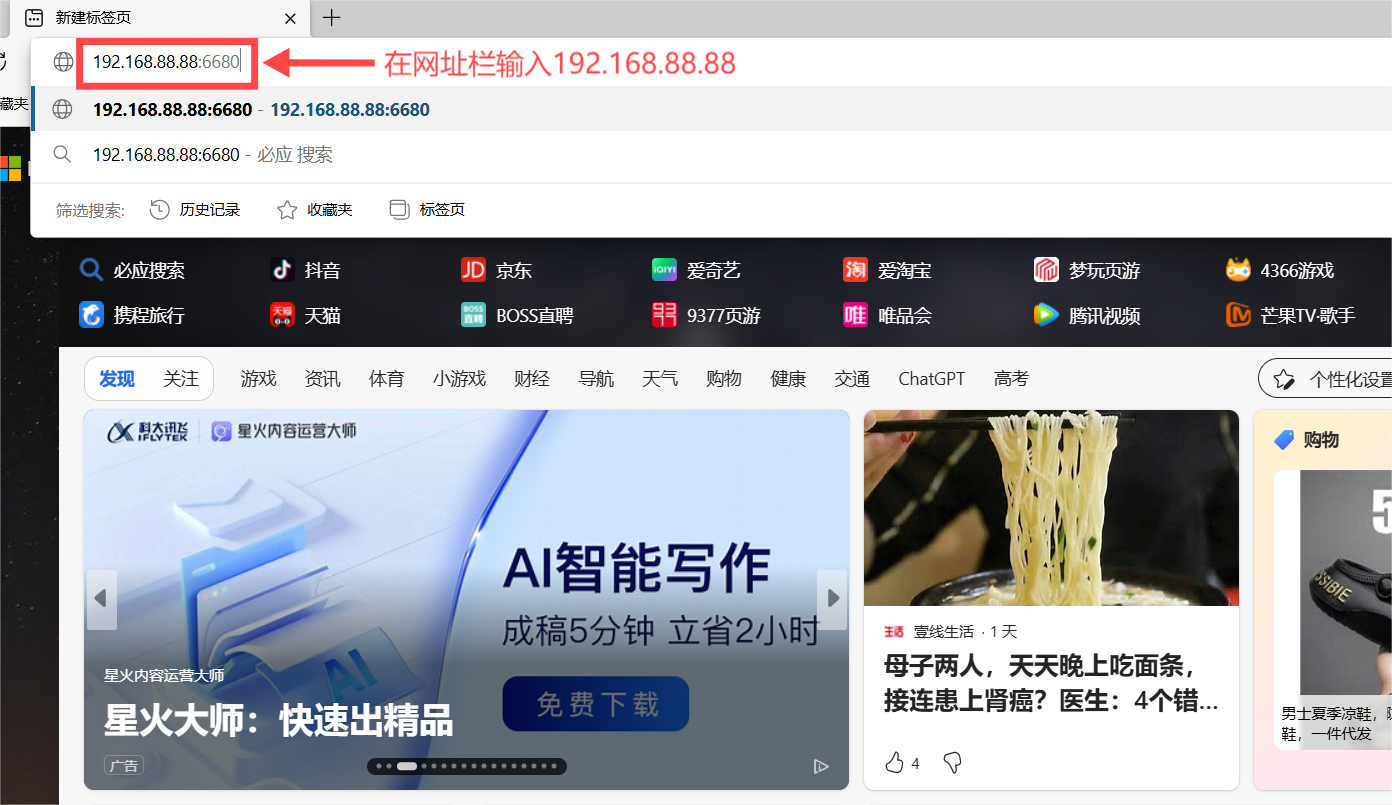 (2)"192.168.88.88:6680"里面的冒號(hào)必須是英文格式下的冒號(hào),不然會(huì)訪(fǎng)問(wèn)失敗。
