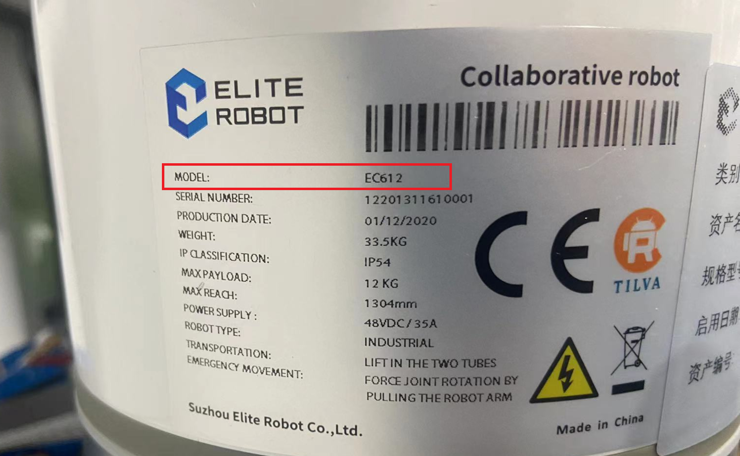機型確認查看機器人基座1軸或控制柜銘牌MODEL為型號,如圖列MODEL;EC612