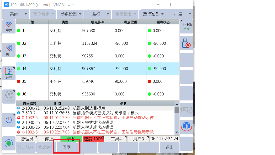 手動打開伺服點擊回零