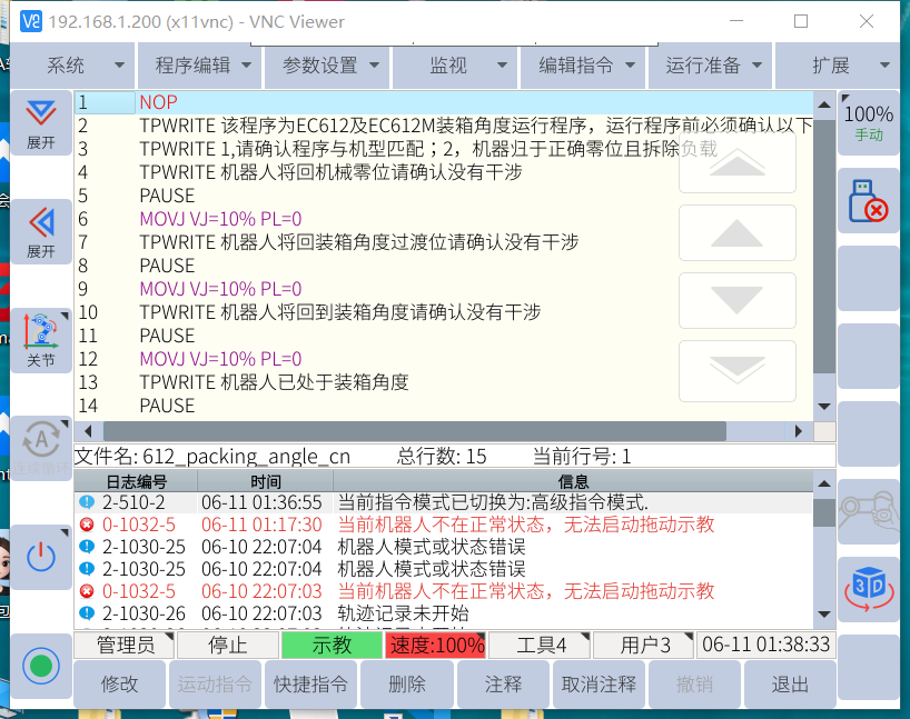 修改6個軸角度并運行,EC612示列
