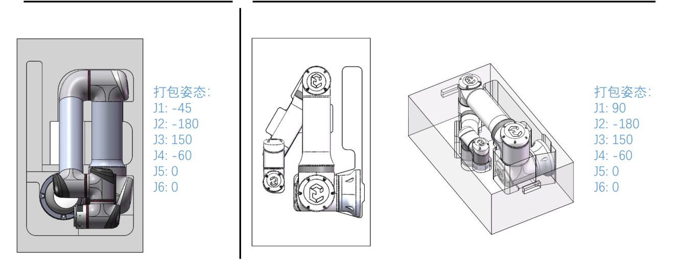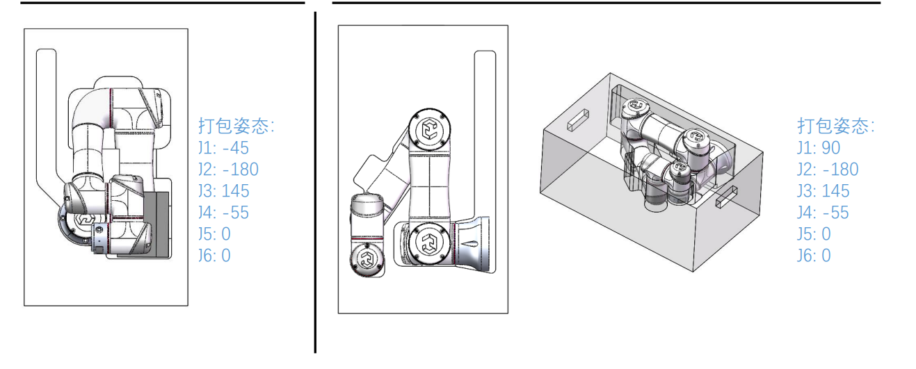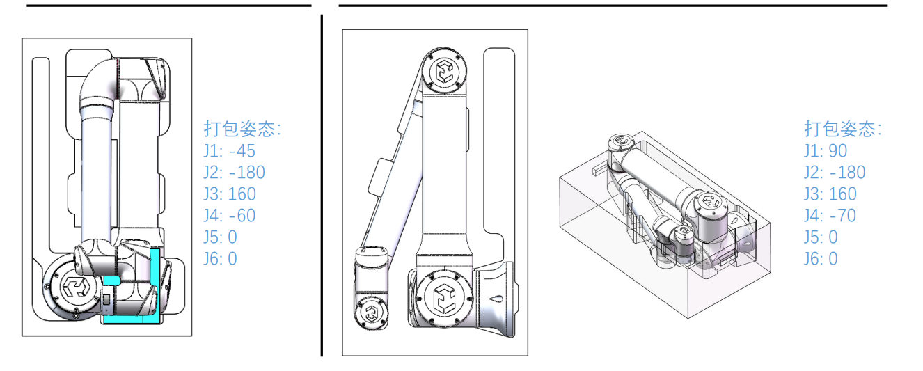 打包姿態(tài)角度:J1: -45 J2: -180 J3: 160 J4: -60 J5: 0 J6: 0